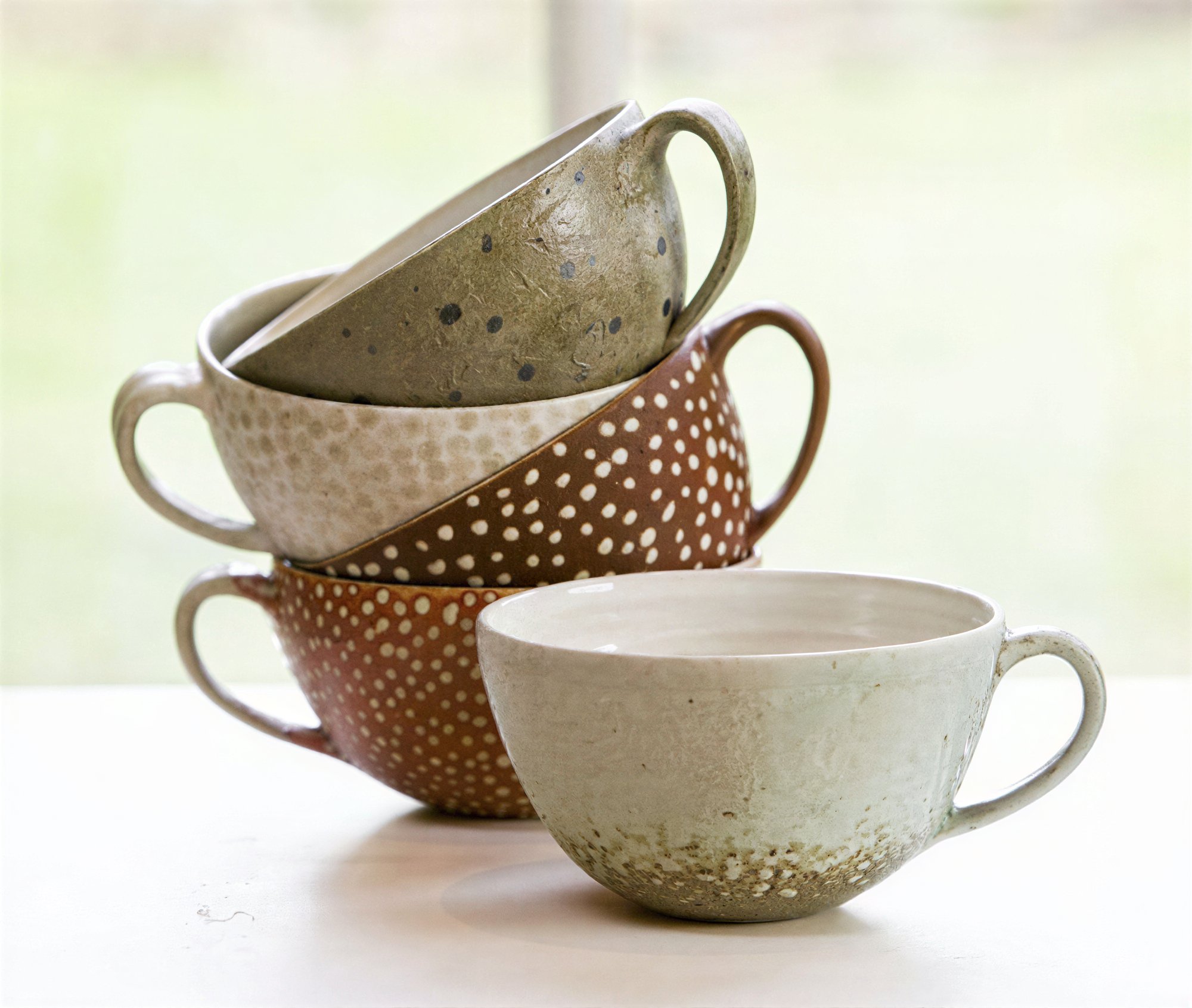 Jeg laver stadig tekopper med hank, - når det passer ind imellem mit arbejde med de store krukker. Derfor skal man være lidt heldig for at få fat i dem. Du kan altid sende mig en sms og høre, om jeg har kopper. Hvis jeg har, sender jeg fotos af udvalget, og jeg sender også.