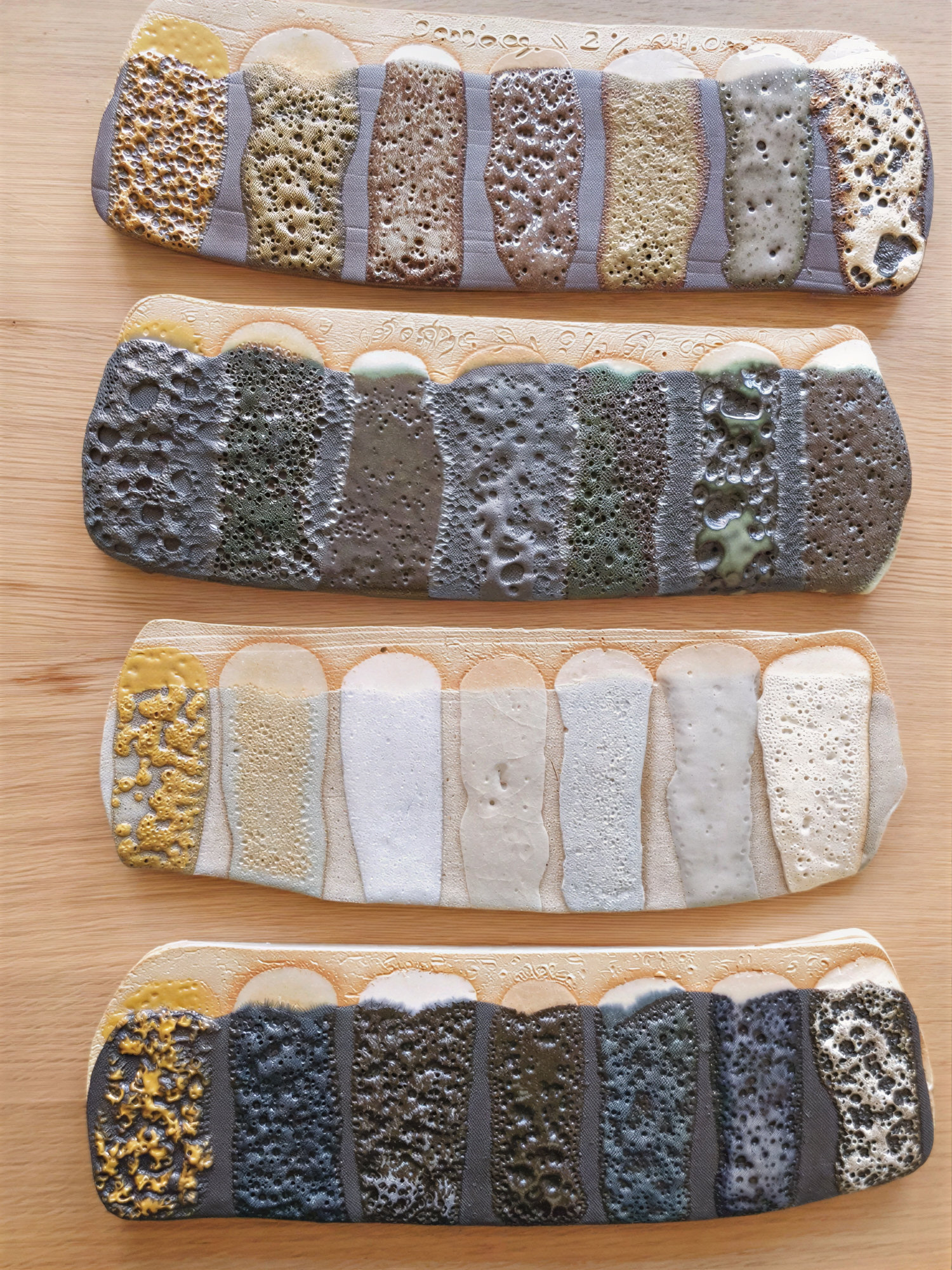 Rough surface structures, semitransparent layers of slip and colour, graphic patterns, shades of earth colours, and my awareness in the making, are my means to achieve this.