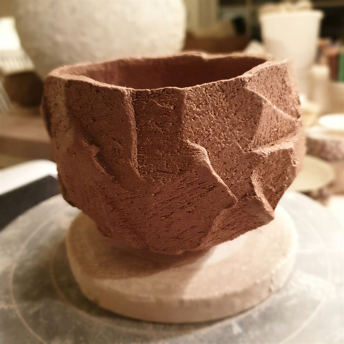 I work mostly with stoneware clays and a little porcelain, fired in electric kiln. I like the combination of a rough and refined expression in my ceramics.